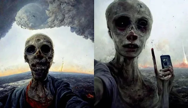 Con tan solo una frase la IA crea las diferentes imágenes, en este caso, el resultado para la selfie del fin del mundo fue aterradora.